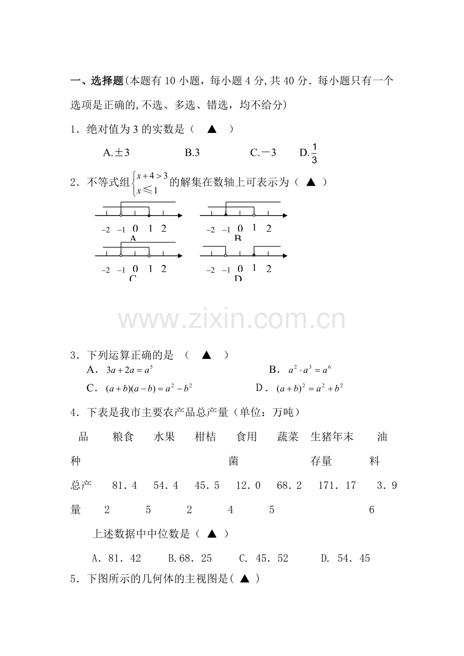 2.不等式组的解集在数轴上可表示为( ▲ )