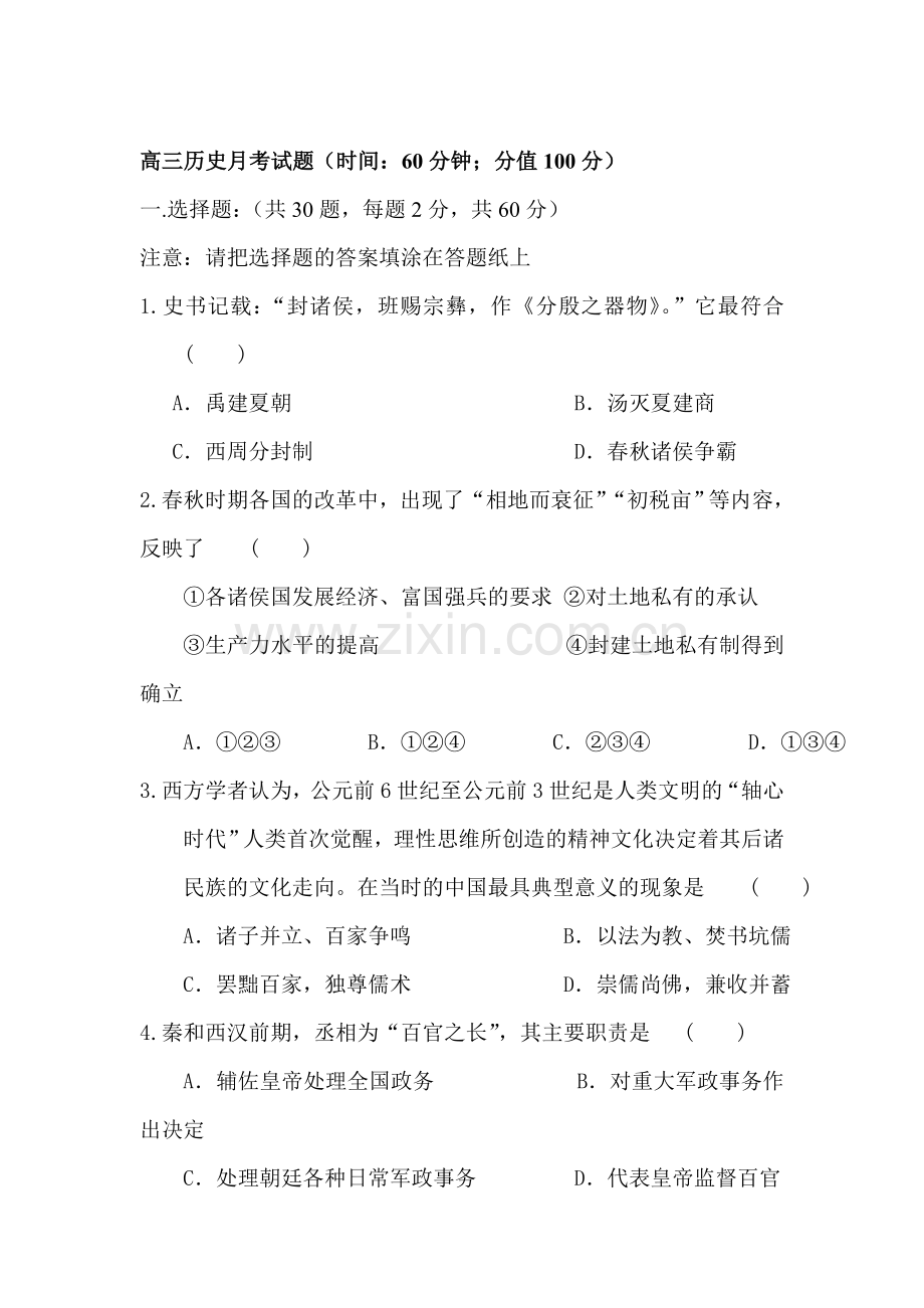 3.西方学者认为,公元前6世纪至公元前3世纪是人类文明的“轴心时代”人类首次觉醒,理性思维所创造的精神文化决定着其后诸民族的文化走向。在当时的中国最具典型意义的现象是 ( )
