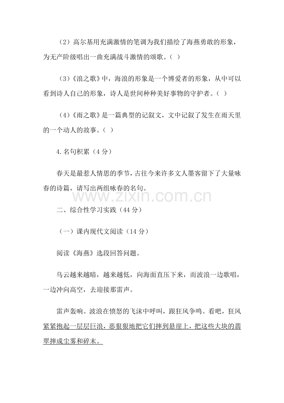 (2)高尔基用充满激情的笔调为我们描绘了海燕勇敢的形象,为无产阶级唱出一曲充满战斗激情的颂歌。( )