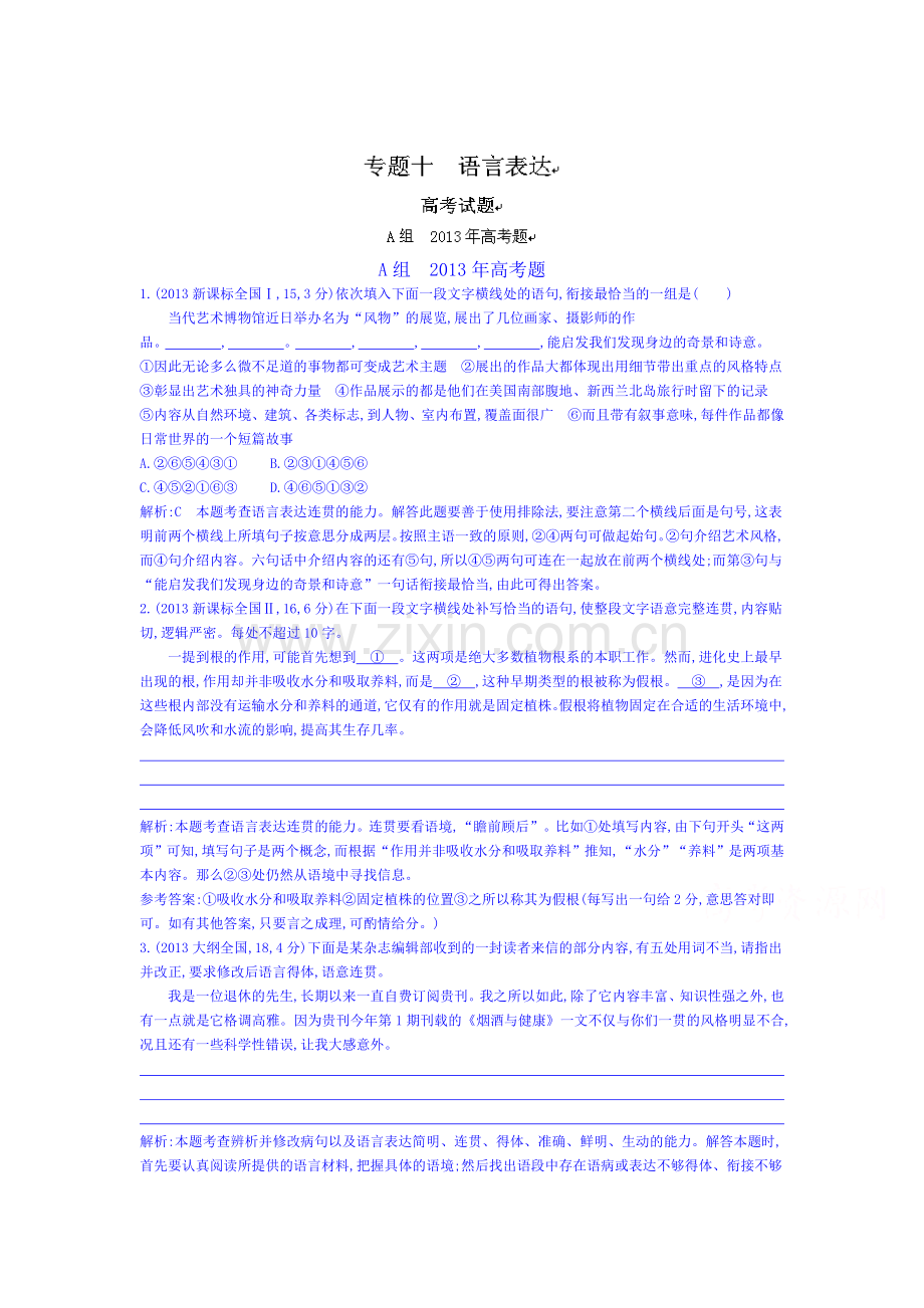 1.(2013新课标全国Ⅰ,15,3分)依次填入下面一段文字横线处的语句,衔接最恰当的一组是( )