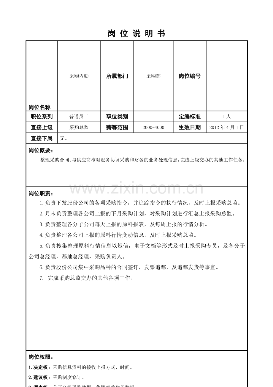 4)协作:股份公司相关部门、分子公司采购经理。
