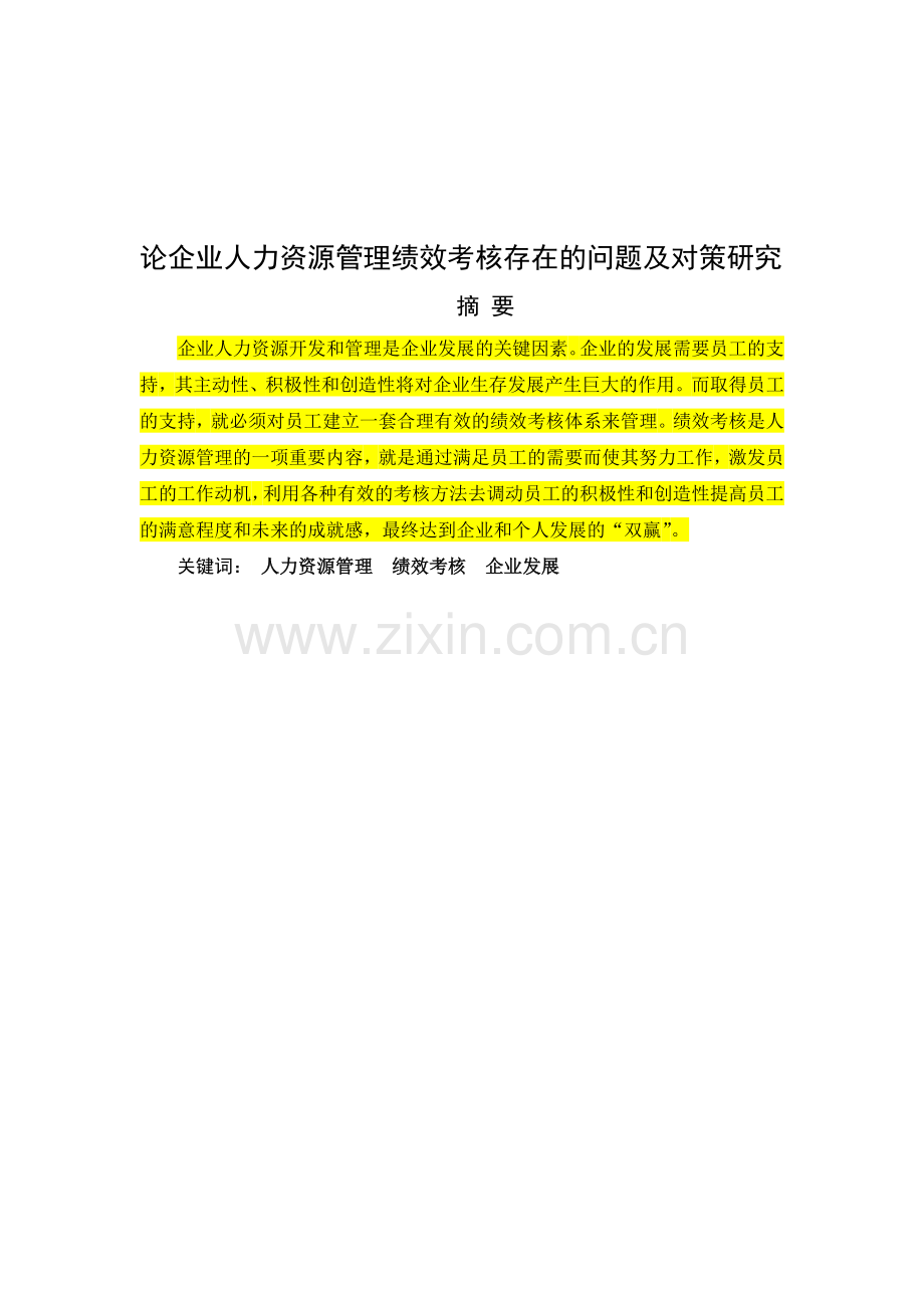 关键词: 人力资源管理 绩效考核 企业发展