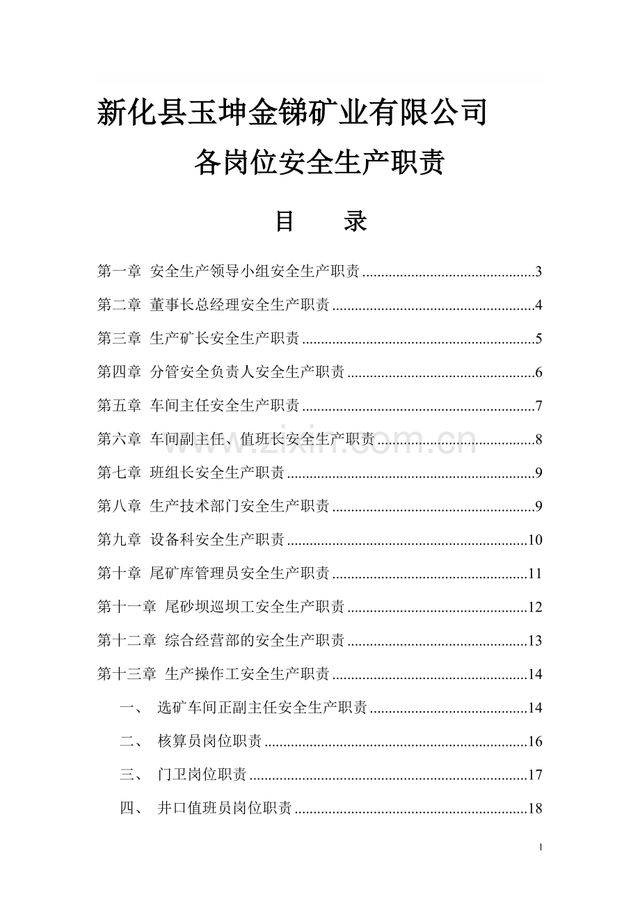 一、 选矿车间正副主任安全生产职责 14