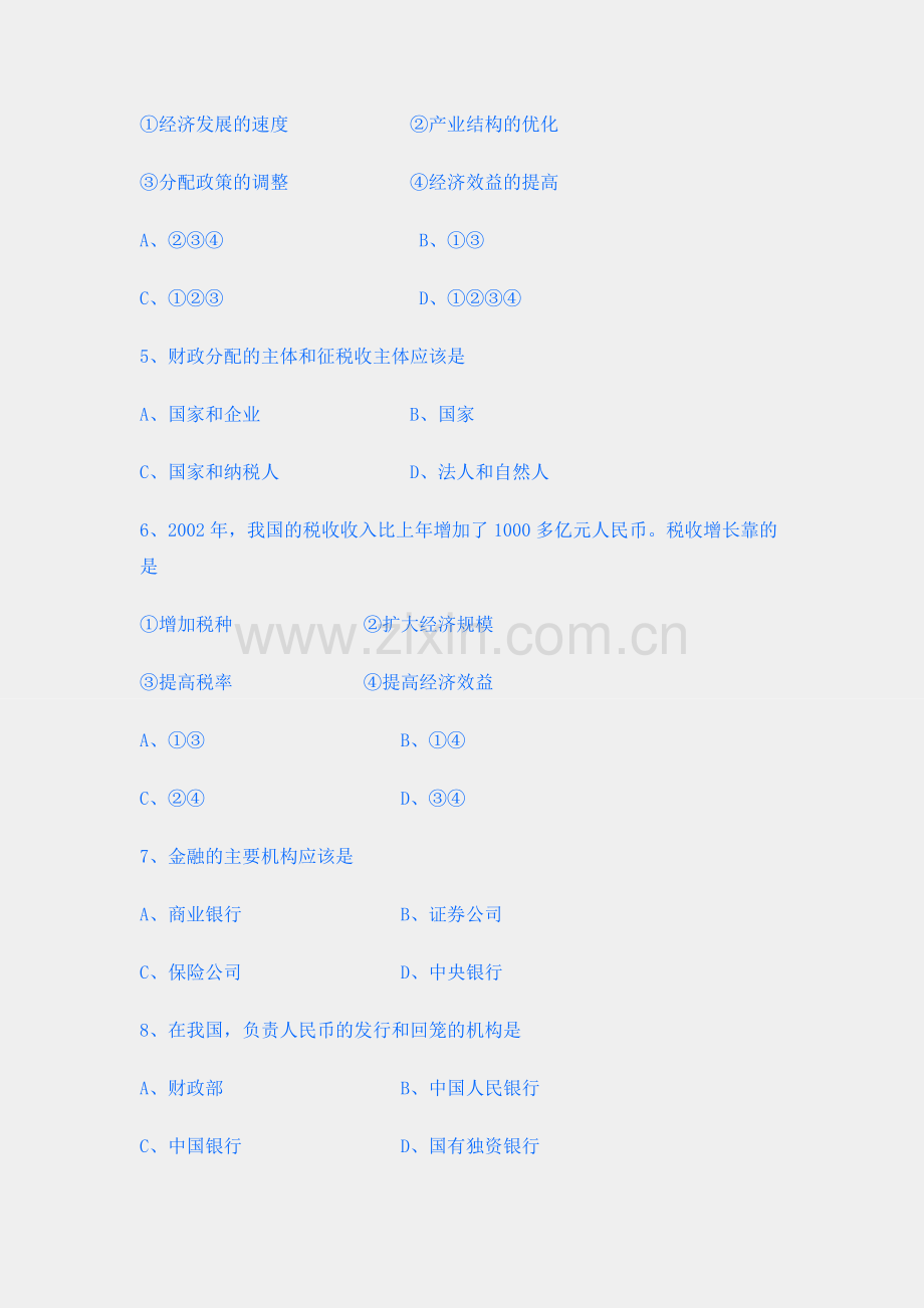 (1) 国内生产总值(GDP)不断提高的情况下,财政收入为什么也是不断增加的?(仅用第五课所学的知识回答。)(8分)