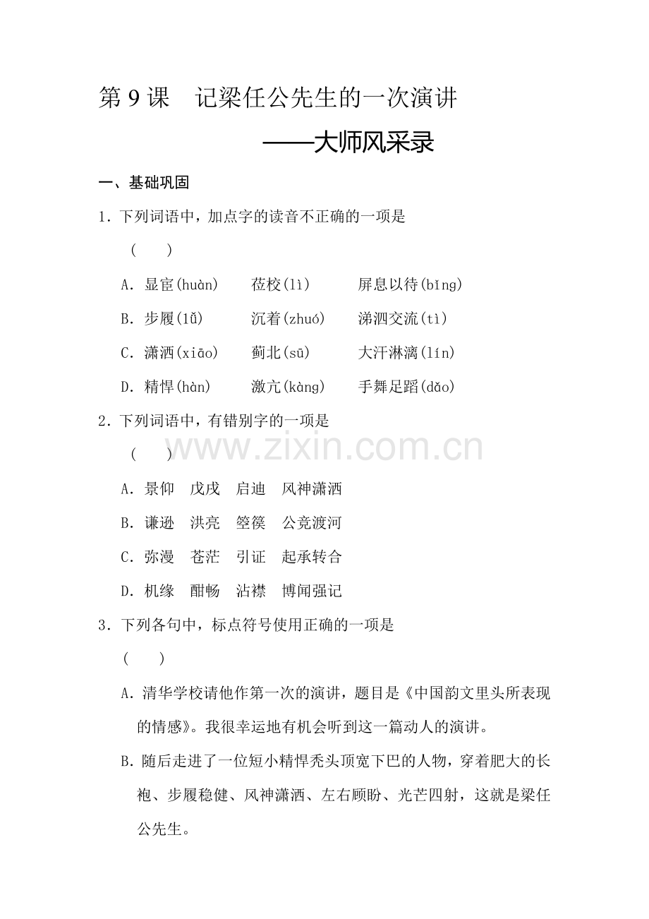 第9课 记梁任公先生的一次演讲