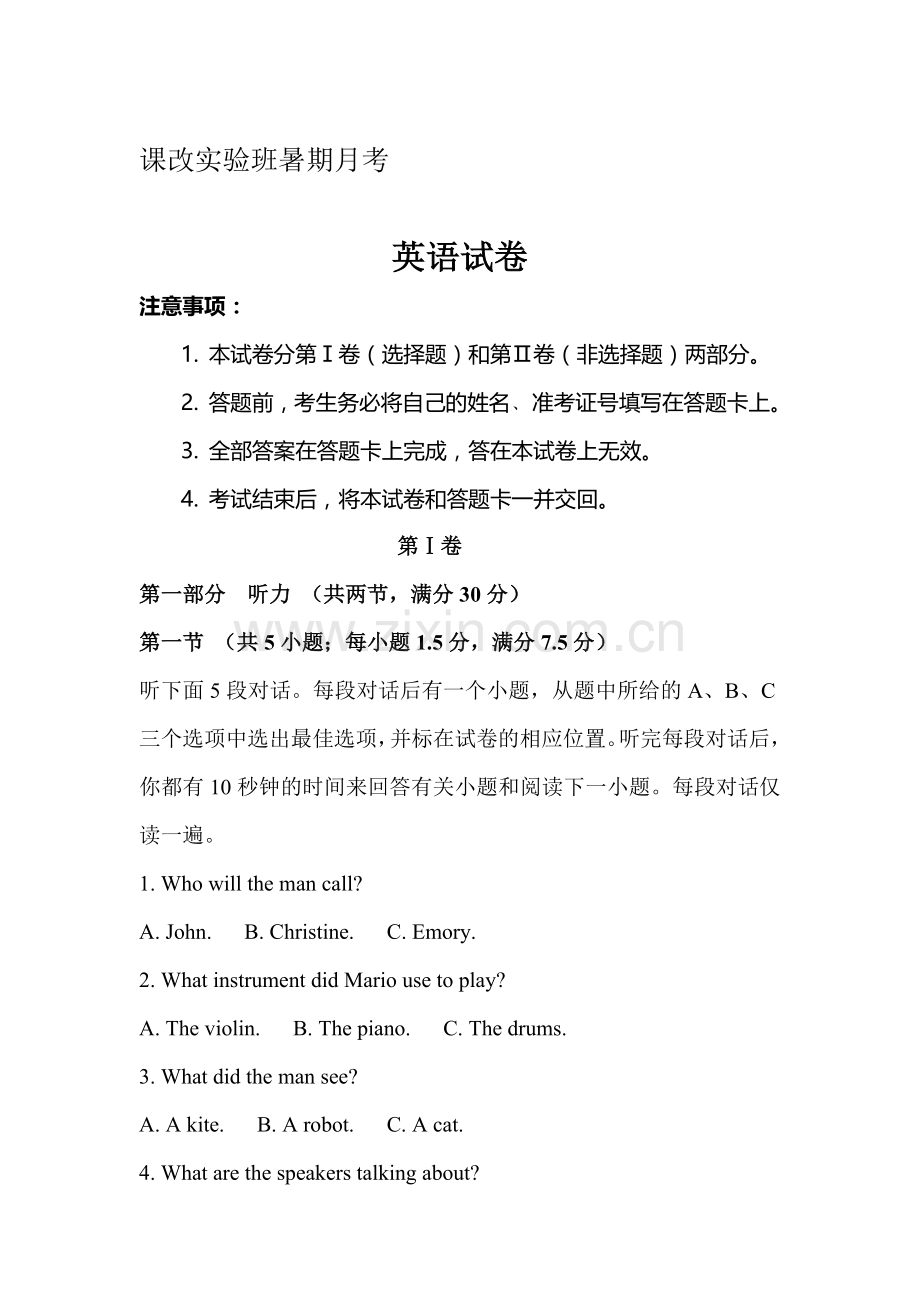 第一节 (共5小题;每小题1.5分,满分7.5分)