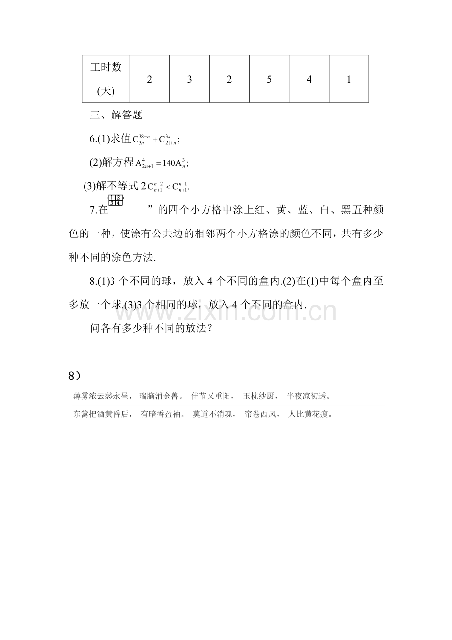 8.(1)3个不同的球,放入4个不同的盒内.(2)在(1)中每个盒内至多放一个球.(3)3个相同的球,放入4个不同的盒内.