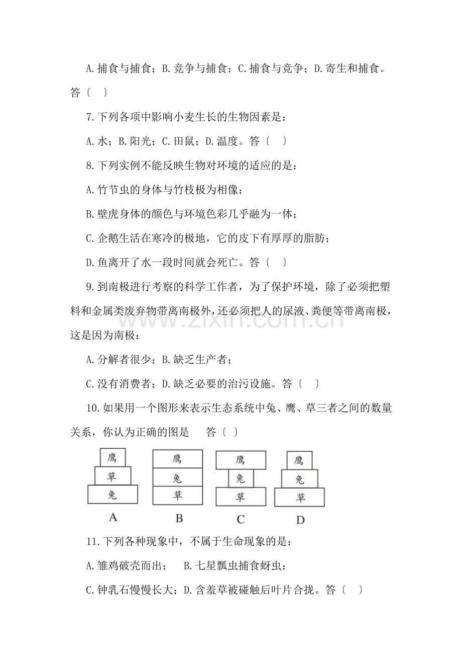 10.如果用一个图形来表示生态系统中兔、鹰、草三者之间的数量关系,你认为正确的图是 答〔 〕