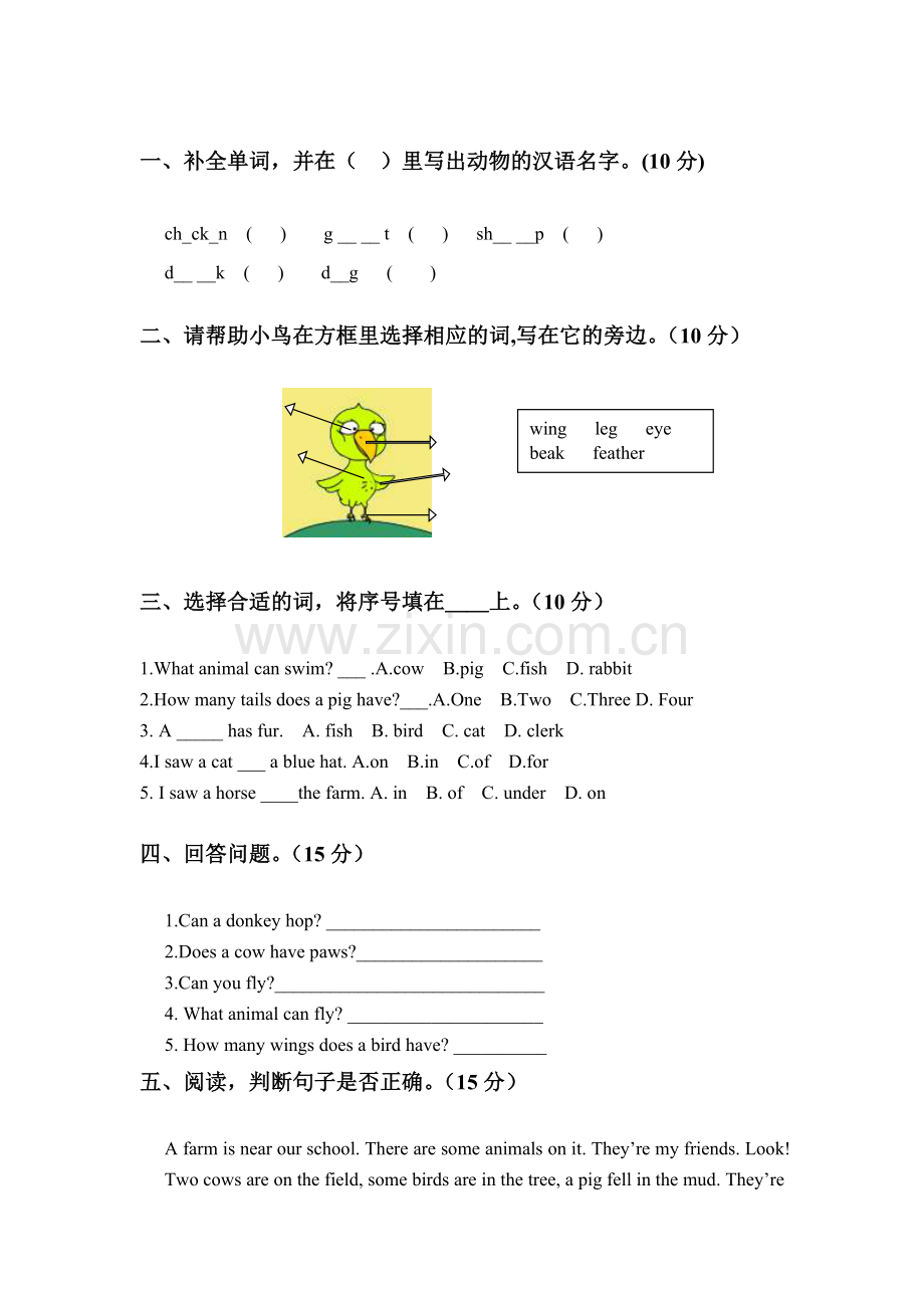 1.What animal can swim? ___ .A.cow B.pig C.fish D. rabbit