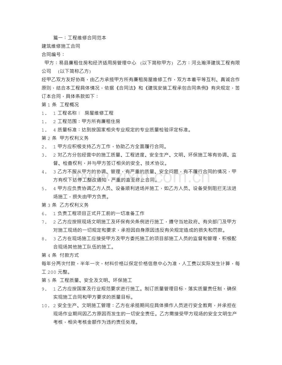 篇一:工程维修合同范本