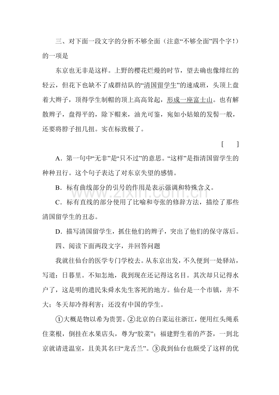 7.起到了衬托藤野先生的作用,使读者更为深切地感受到他的关心和帮助才是真诚的,实实在在的,是令作者终生难忘的。