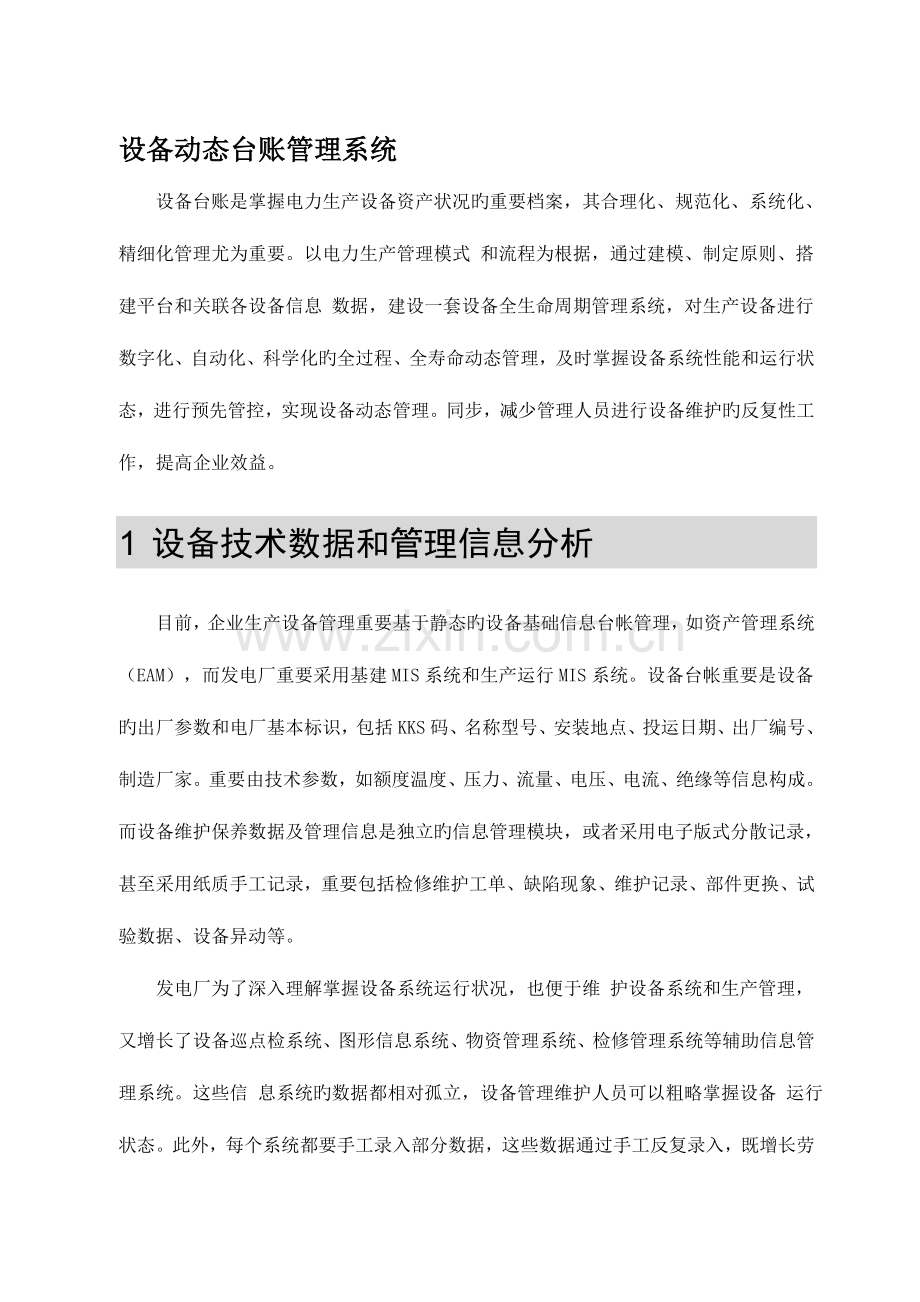 (3) 深化处理设备台账与各设备有关系统旳数据集成和共享,使之在某电厂建设一套设备动态台账管理系统。