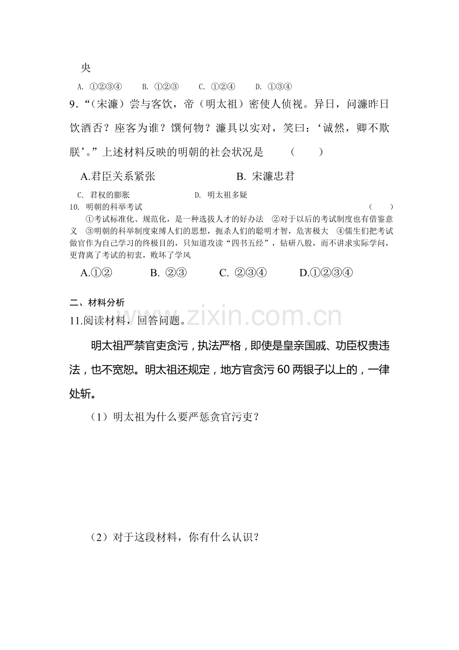 3.明朝采取的下列措施中,明显说明封建制度已渐趋衰落的是 ( )