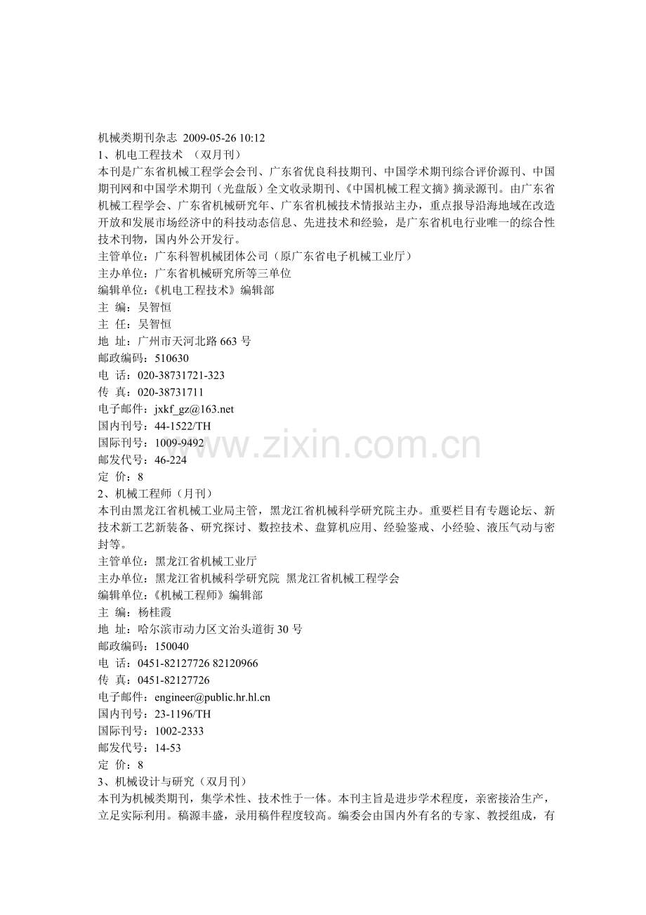 机械类期刊杂志 2009-05-26 10:12