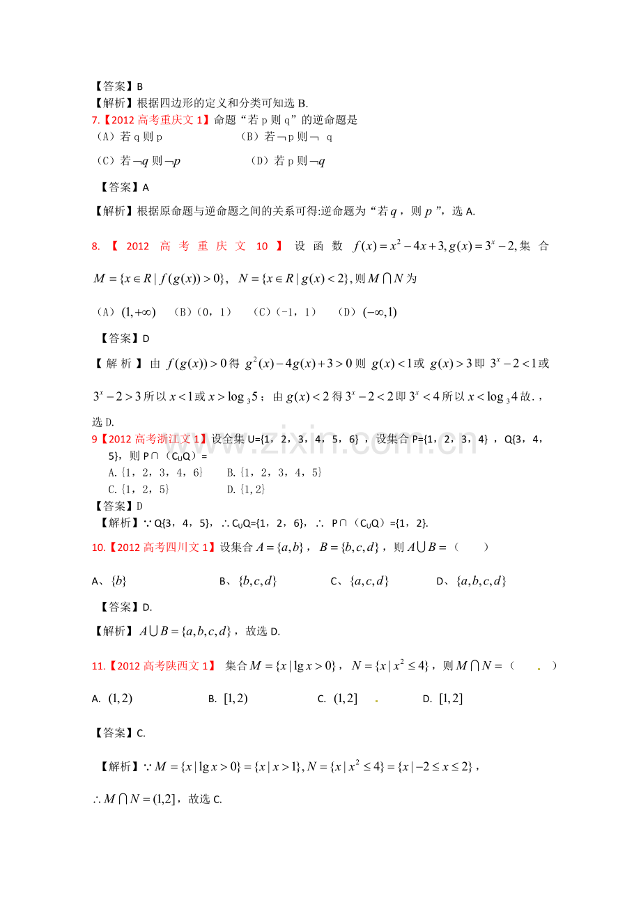 6.【2012高考全国文1】已知集合是平行四边形,是矩形,是正方形,是菱形,则