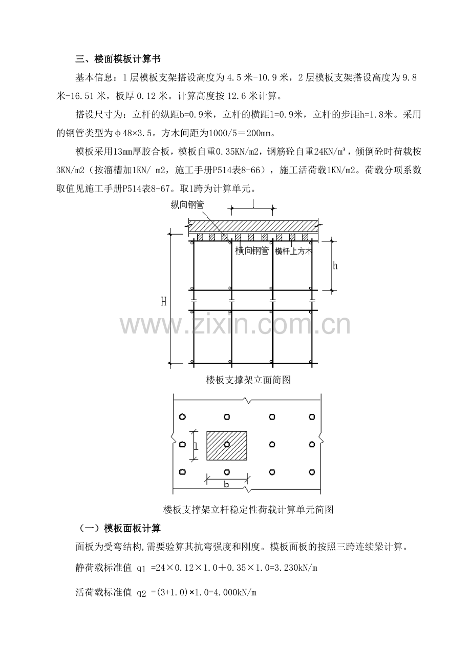 基本信息:1层模板支架搭设高度为4.5米-10.9米,2层模板支架搭设高度为9.8米-16.51米,板厚0.12米。计算高度按12.6米计算。