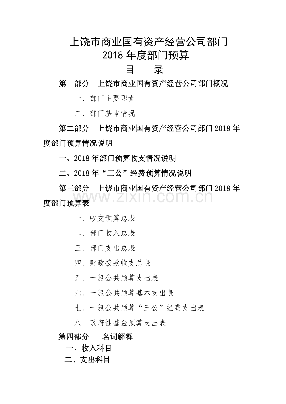 第三部分 上饶市商业国有资产经营公司部门2018年度部门预算表