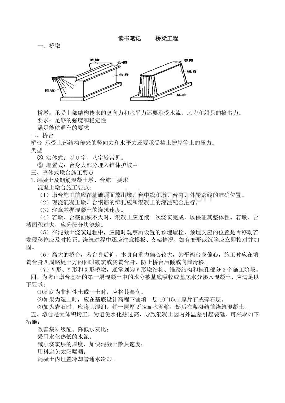 五、墩台是大体积圬工,为避免水化热过高,导致混凝土因内外温差引起裂缝,可采取如下措施:
