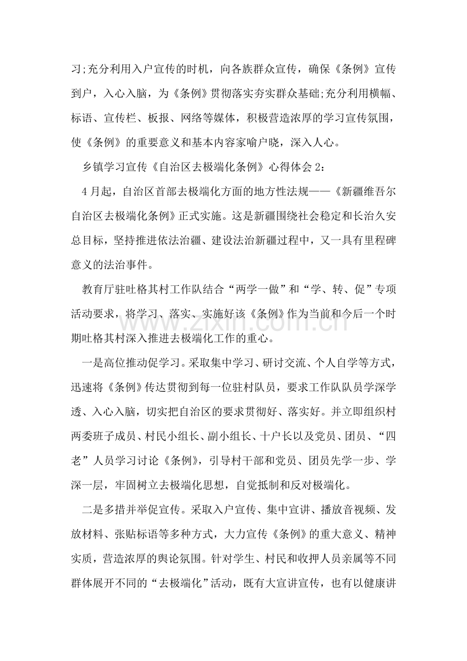 乡镇学习宣传《自治区去极端化条例》心得体会2: