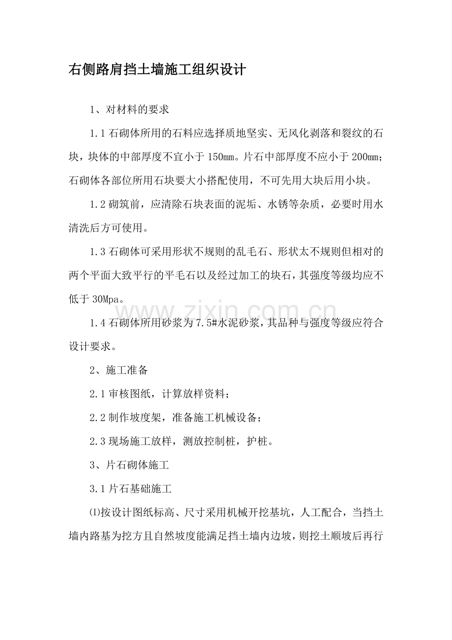 ⑹砌筑挡土墙时,除应满足上述要求外,还应注意以下几点:每砌2-3皮毛石为一个分层高度,应找平一次;每皮应大体找平,外露墙面的灰缝宽度以20-30mm为宜,上下皮毛石的竖向灰缝应相互错开80mm以上斜向通缝不许超过两层;挡土墙泄水孔为φ10cm,间距3米,上下交错布置;地面线以上挡土墙后面设30cm砂砾垫层,砂砾垫层和底部应用0.3~0.5米厚的胶泥(或其他不透水材料)封闭,以防止水下流。