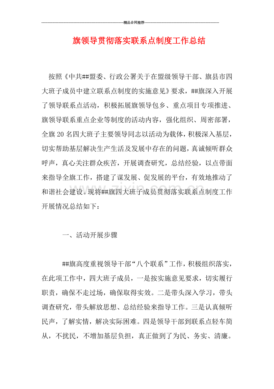 旗领导贯彻落实联系点制度工作总结