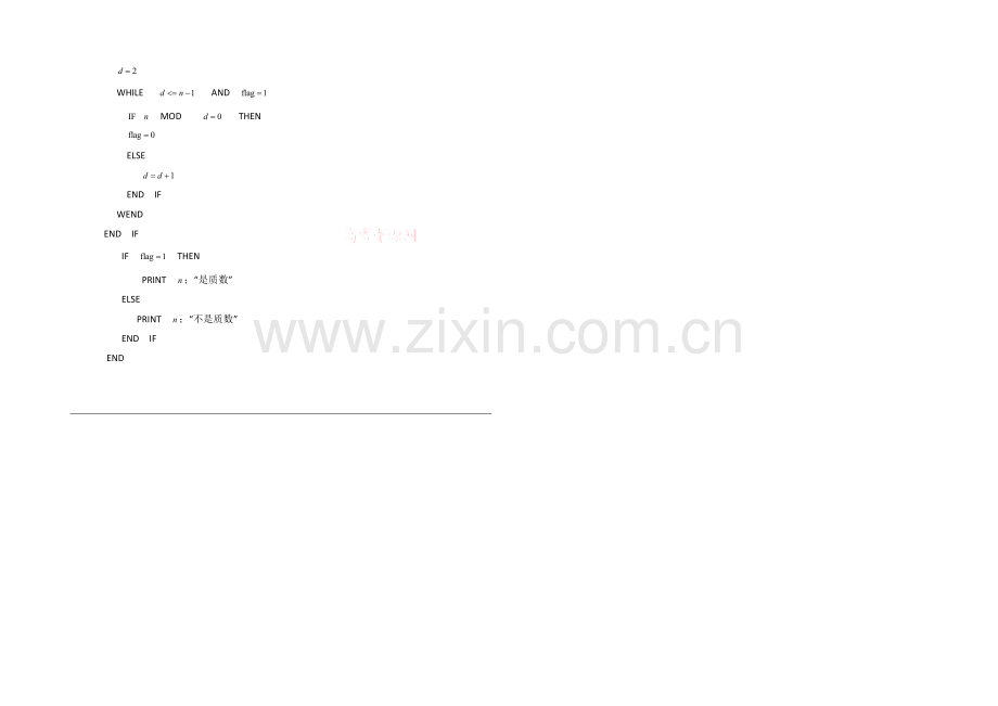 当“WEND”写完后,下一步该写什么呢?很多人会认为要写“ELSE”;其实,是错的,从前面程序语句的意义上分析可以看出这一点:假如,那么,再用“ELSE”,就是说时,执行下面语句.事实上,是对一个大于2的数进行了推断后,要输出结果.明显,不能用“ELSE”.