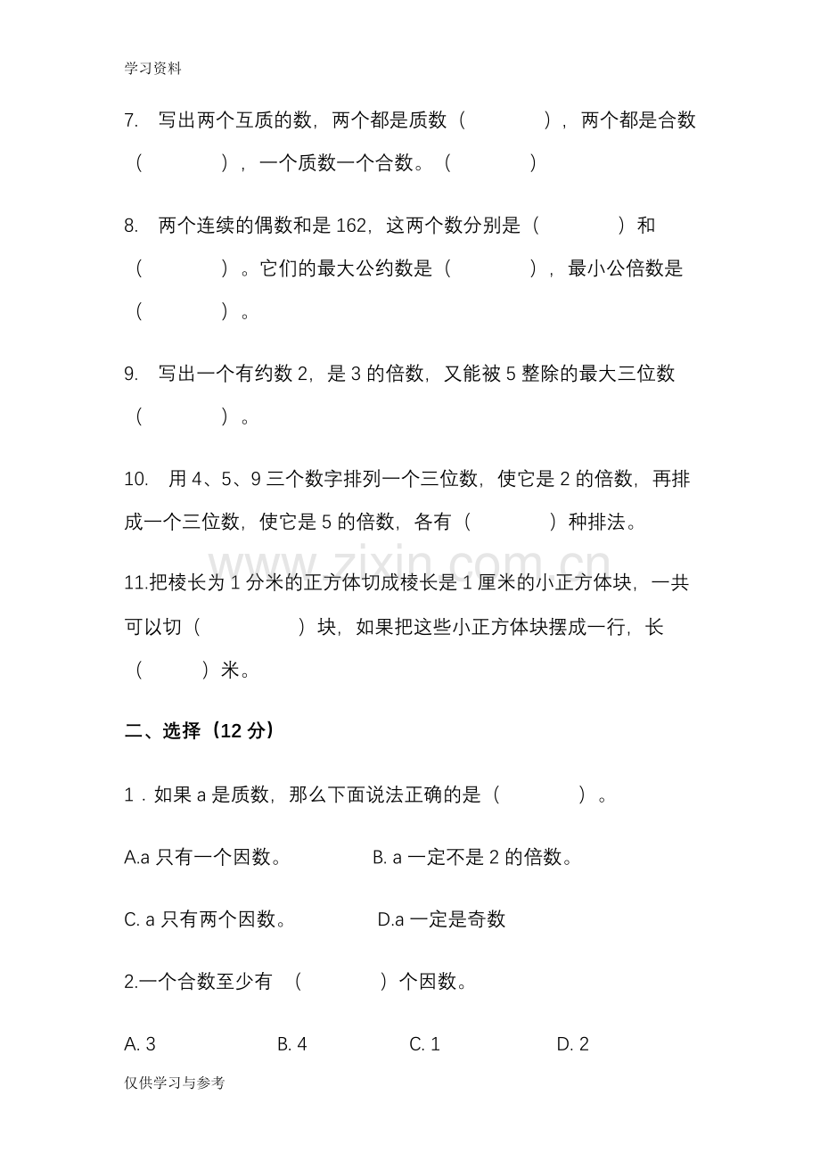 5.从1—9 的自然数中,( )和( )是相邻的两个合数;( ) 和( )是相邻的两个质数。