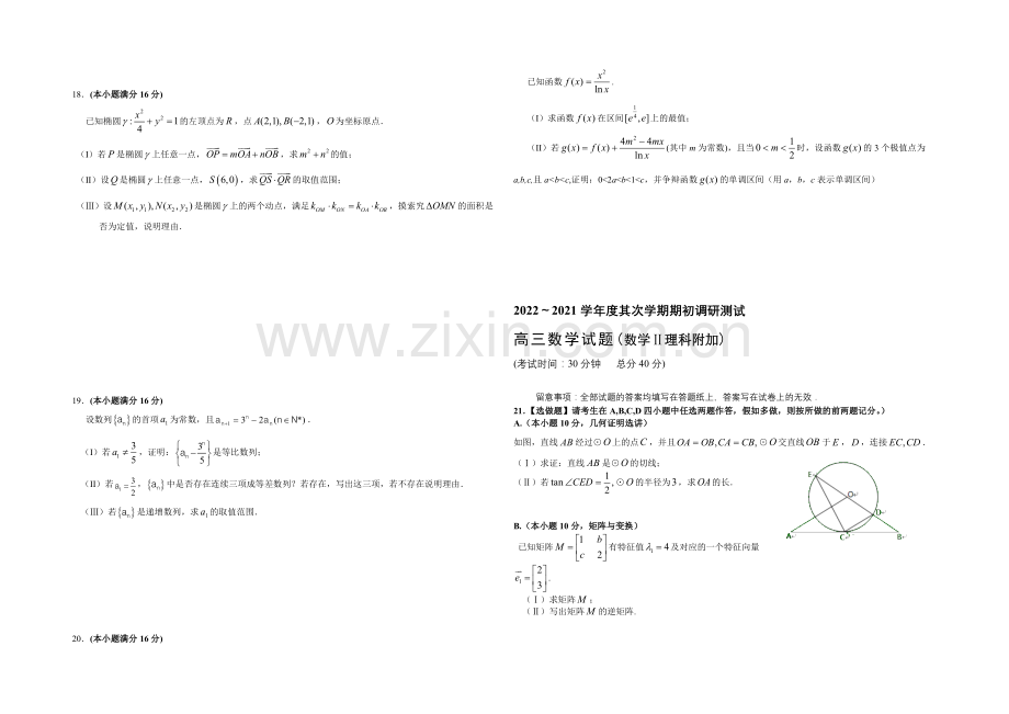21.【选做题】请考生在A,B,C,D四小题中任选两题作答,假如多做,则按所做的前两题记分。)