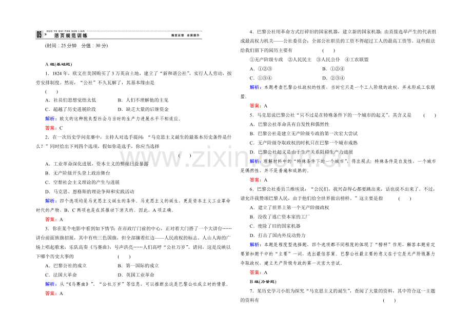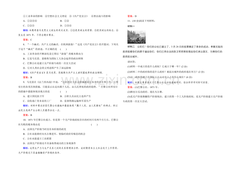 10.1871年巴黎公社成立,但是第一个无产阶级政权存在的时间只有两个月左右,巴黎公社失败的根本缘由是 ( )