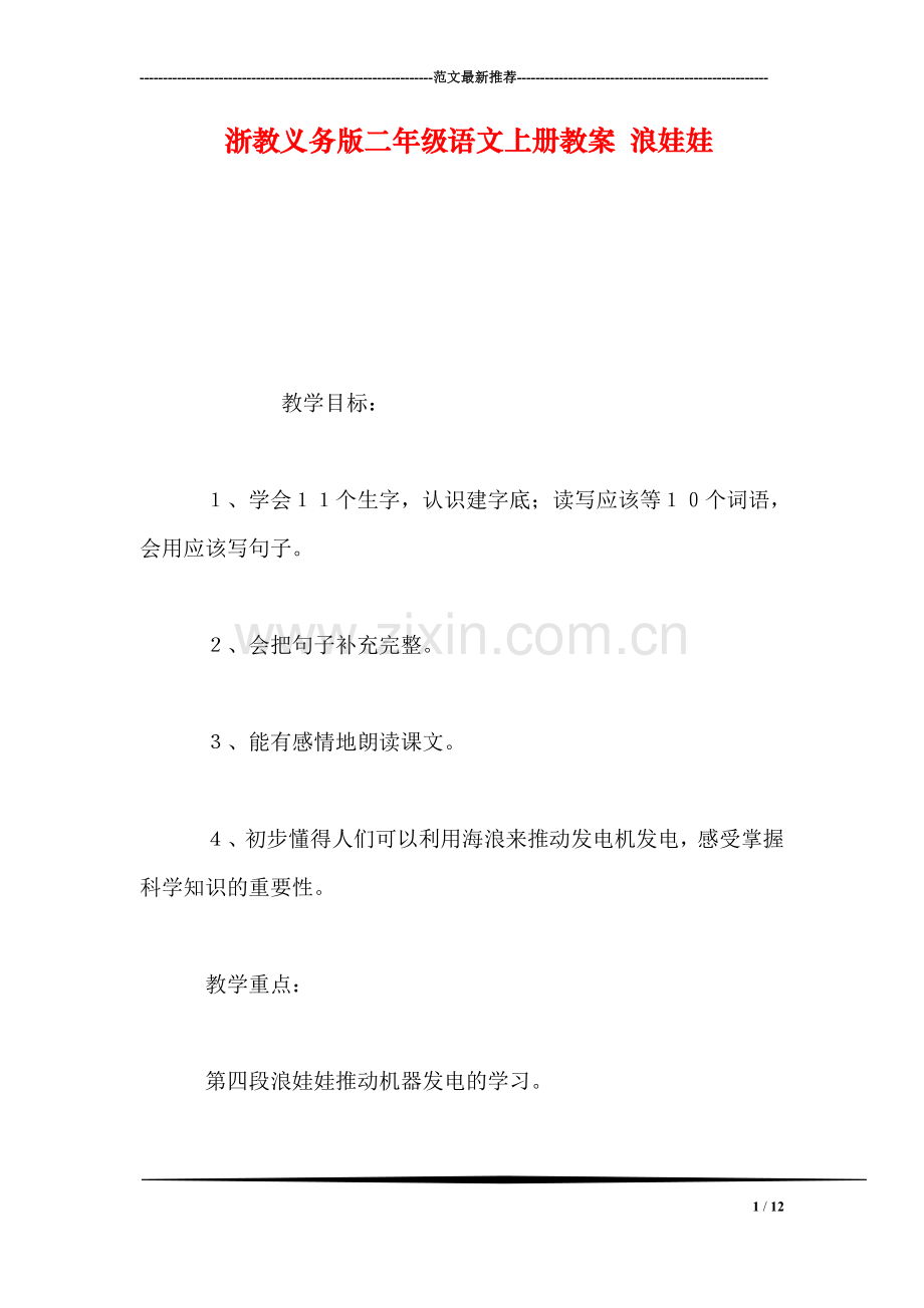 3、齐读1、2两节。说说浪娃娃是个怎样的孩子?