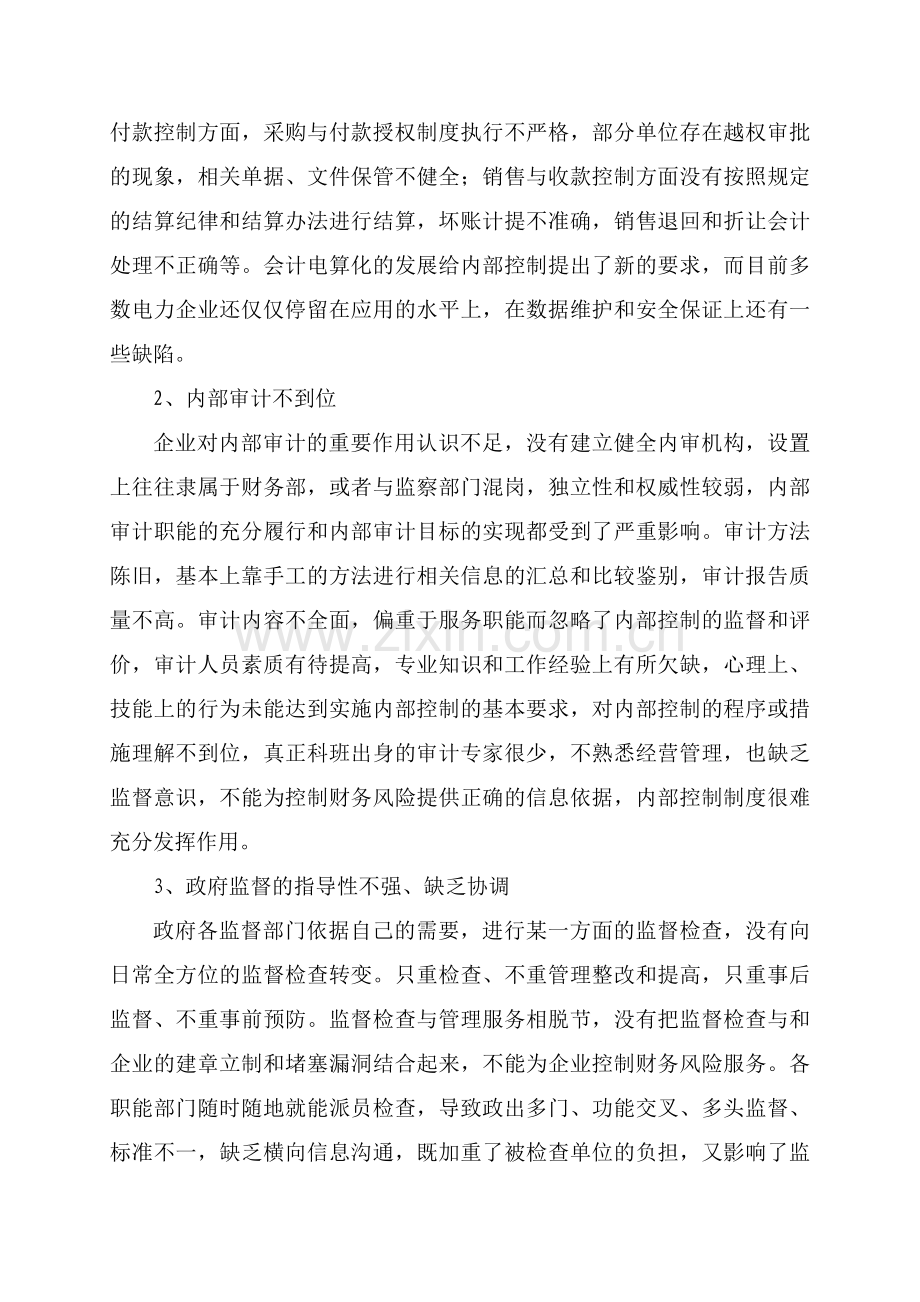 多数县级供电企业已经制定了内部控制制度,但这些制度还不健全或者不完善,没有将各项规定予以细化和具体化,不适合企业自身的特点,不能完全达到堵塞漏洞,消除隐患的目的,不能防止并及时发现、纠正错误和舞弊行为。企业的控制环境、会计系统和控制程序存在着一些薄弱环节,存在内部管理松弛、控制弱化的现象。资金控制方面,现金支出超出限额,空白支票没有按照顺序编号,作废支票没有加盖作废戳记;采购与付款控制方面,采购与付款授权制度执行不严格,部分单位存在越权审批的现象,相关单据、文件保管不健全;销售与收款控制方面没有按照规定的结算纪律和结算办法进行结算,坏账计提不准确,销售退回和折让会计处理不正确等。会计电算化的发展给内部控制提出了新的要求,而目前多数电力企业还仅仅停留在应用的水平上,在数据维护和安全保证上还有一些缺陷。