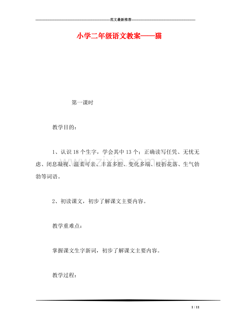 导语: 谁养过猫?能用一句话说说你对猫的整体感觉吗?(学生发言)同学们,老舍先生也很爱猫,今天我们一起学习的课文《猫》,就体现了他对猫的喜爱之情。