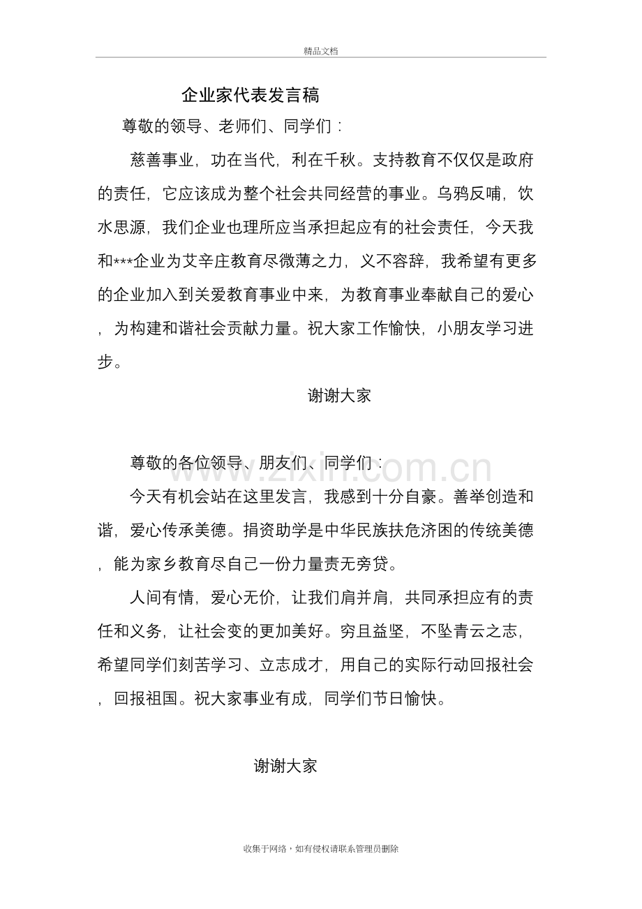 企业家代表发言稿