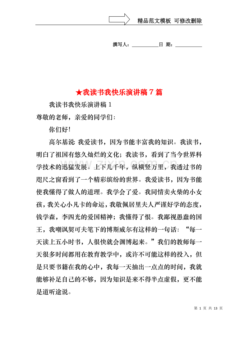 大家好!今天我演讲的题目是:我读书、我快乐、我收获!