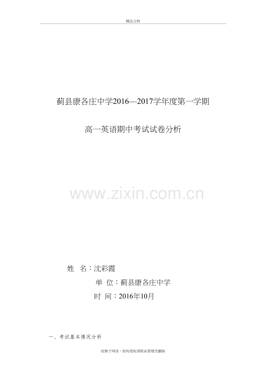高一英语期中考试试卷分析
