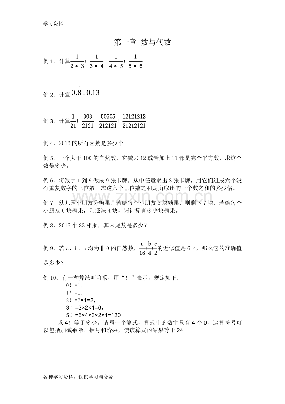 例10、把1至2016这2016个自然数依次写下来得到一个多位数123456789.....2016,这个多位数除以9余数是多少?