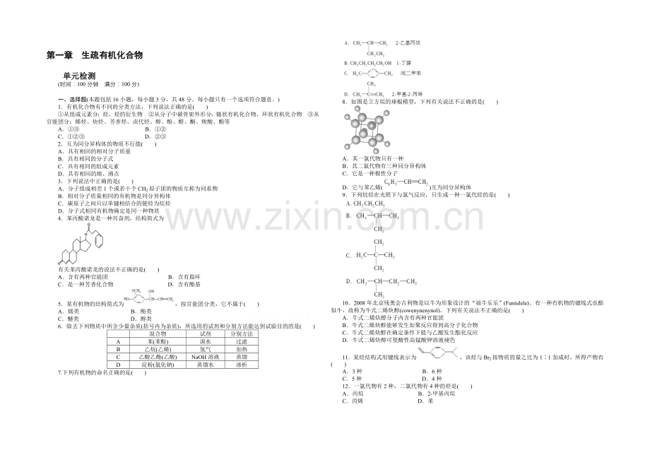 8.C [整个分子结构是立方体型,且分子结构是对称的,是非极性分子。它的一氯代物只有一种;二氯代物有三种状况:两个氯原子在立方体同棱有一种,两个氯原子位置在对角有面对角和体对角两种状况,所以同分异构体有三种;苯乙烯的分子式与立方烷的分子式相同,但结构不同,所以它们互为同分异构体。]