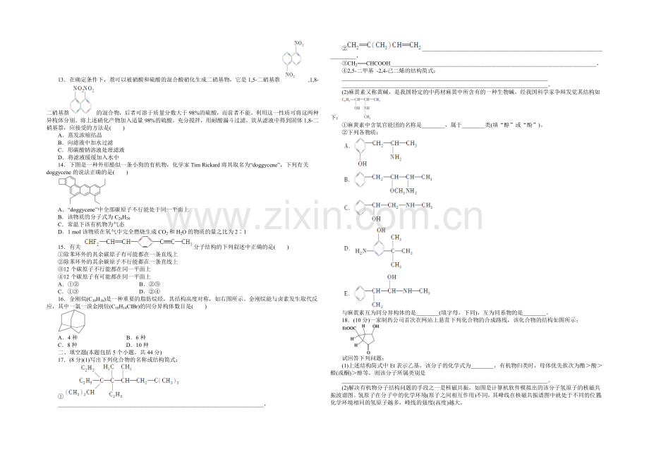 14.下图是一种外形酷似一条小狗的有机物,化学家Tim Rickard将其取名为“doggycene”,下列有关doggycene的说法正确的是( )