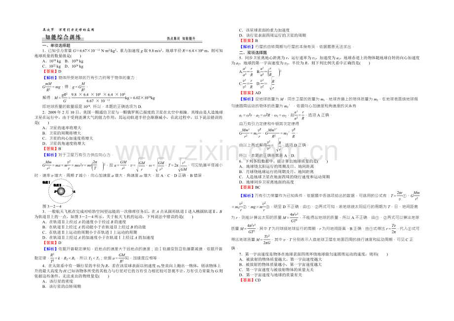 3.一般航天飞机在完成对哈勃空间望远镜的一次修理任务后,在A点从圆形轨道Ⅰ进入椭圆轨道Ⅱ,B为轨道Ⅱ上的一点,如图3-2-4所示,关于航天飞机的运动,下列说法中错误的是( )