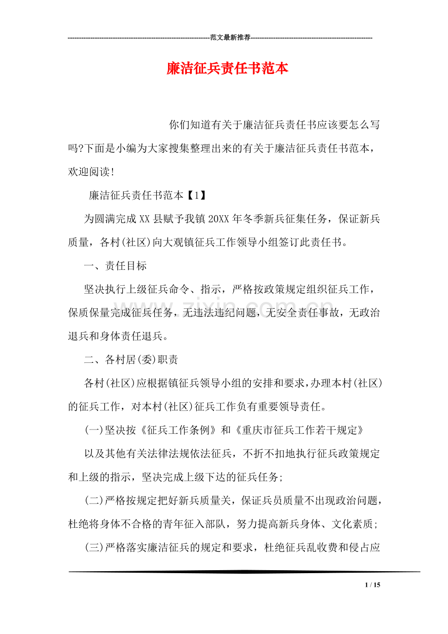 你们知道有关于廉洁征兵责任书应该要怎么写吗?下面是小编为大家搜集整理出来的有关于廉洁征兵责任书范本,欢迎阅读!