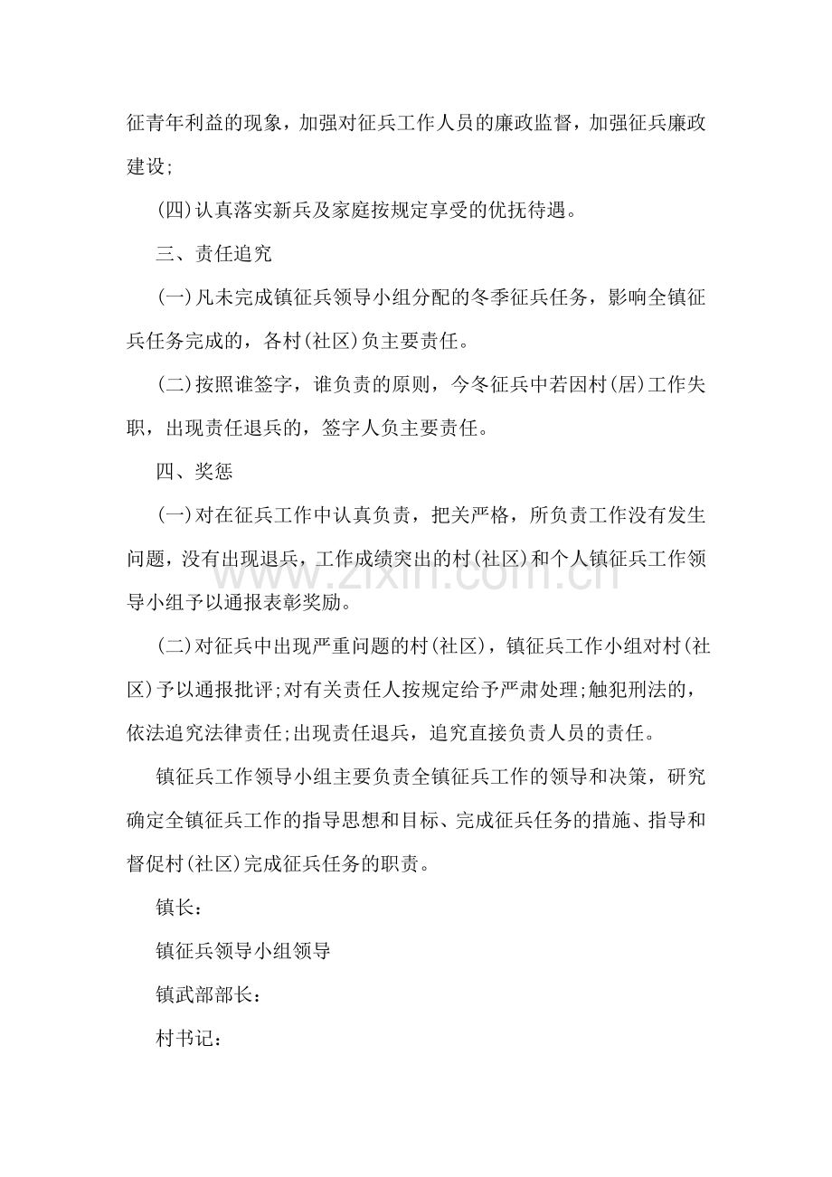 为圆满完成XX县赋予我镇20XX年冬季新兵征集任务,保证新兵质量,各村(社区)向大观镇征兵工作领导小组签订此责任书。