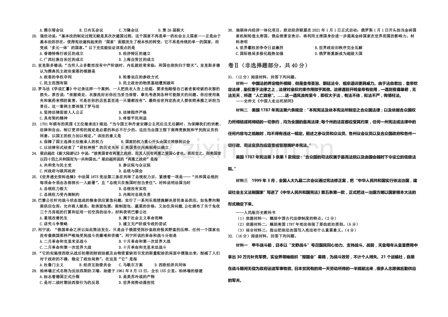 卷Ⅰ(选择题部分,每题2分,共60分)