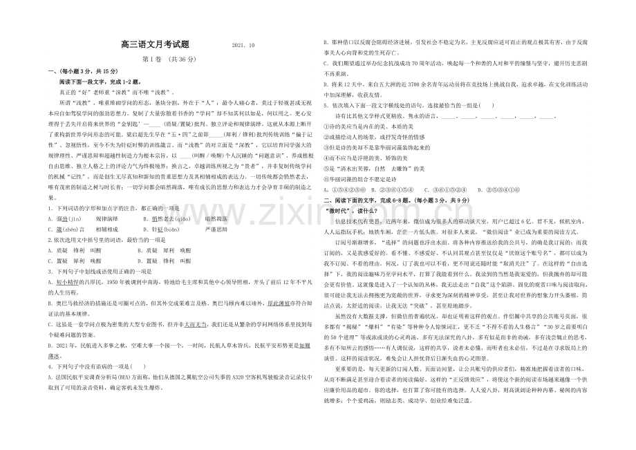 1.下列词语的字形和加点字的注音,都正确的一项是