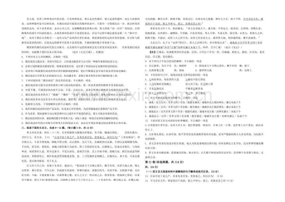 三、阅读下面的文言文,完成9—12题。(每小题3分,共12分)