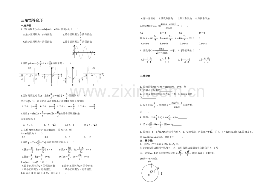 A.最小正周期为2π的偶像函数 B.最小正周期为2π的奇函数