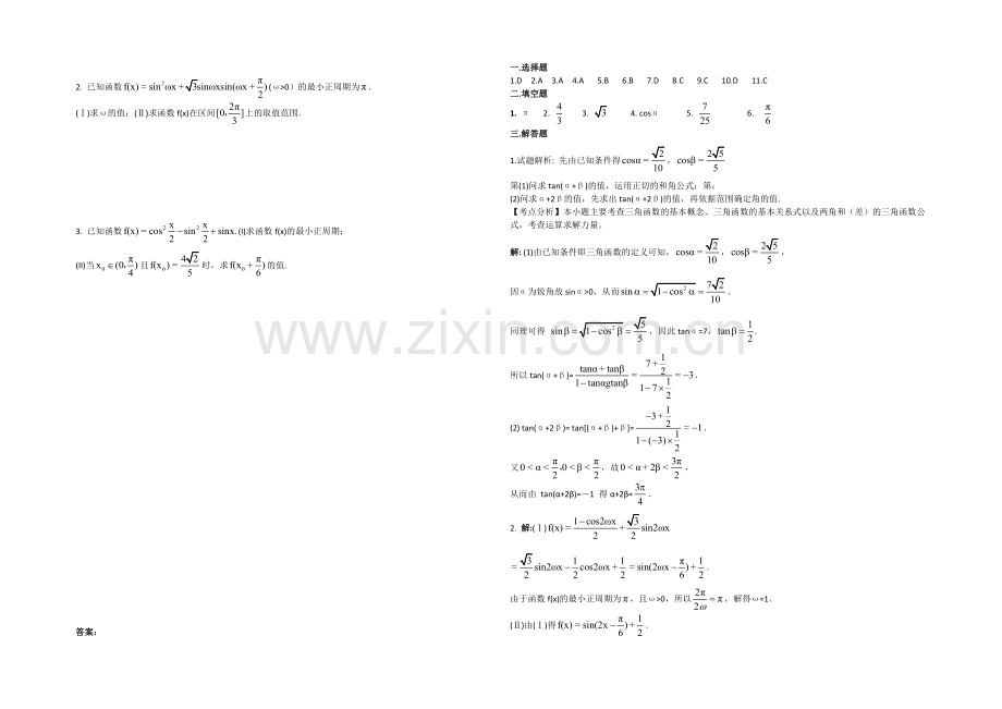 3. 已知函数(I)求函数f(x)的最小正周期;