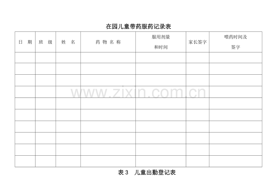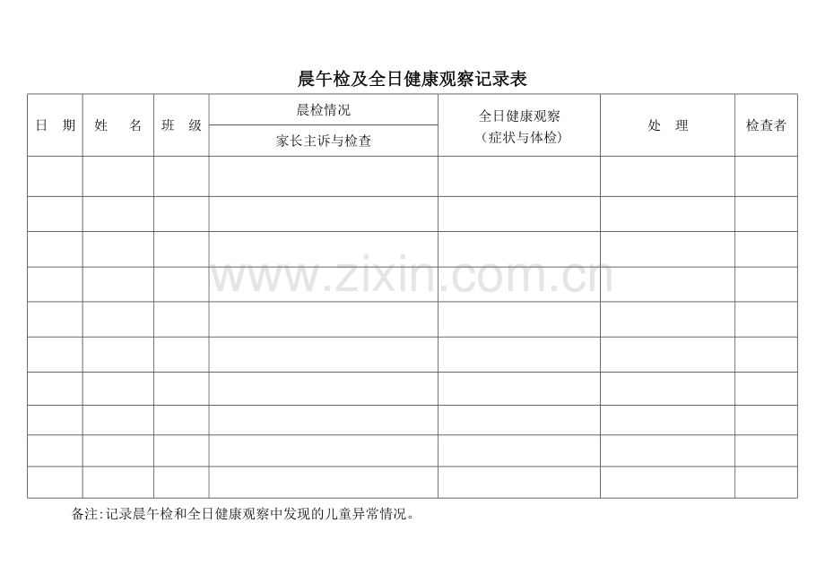 备注:记录晨午检和全日健康观察中发现的儿童异常情况。