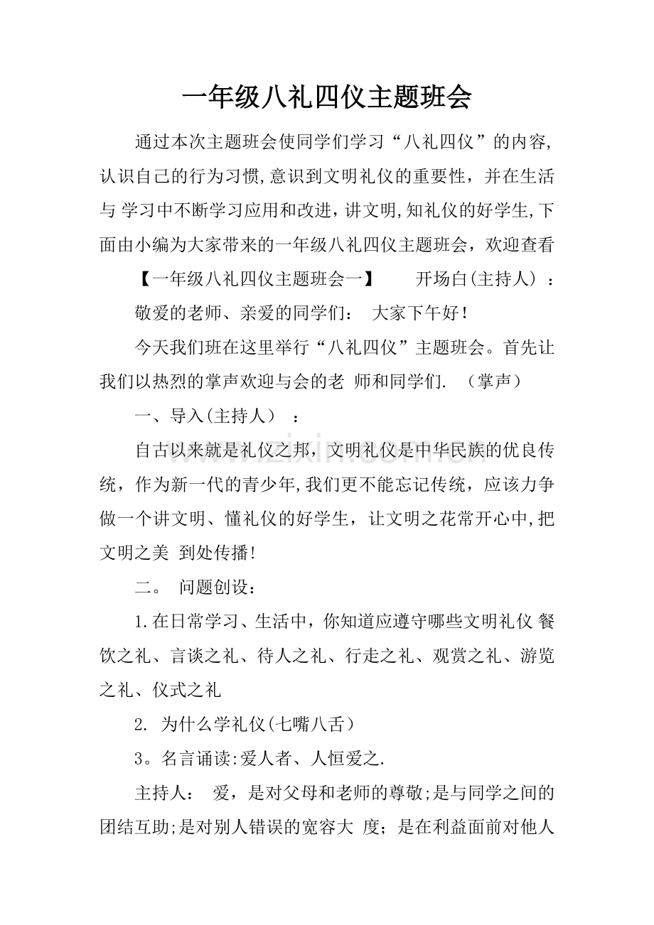 【一年级八礼四仪主题班会一】 开场白(主持人) :