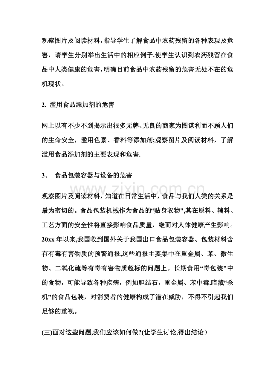 教学重点:让学生真正明确食品安全的重要性,饮食要讲究的必要性。