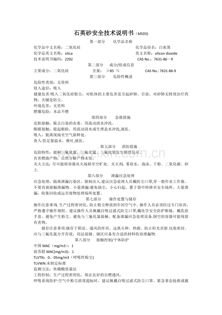 化学品中文名称:二氧化硅 化学品俗名:白炭黑